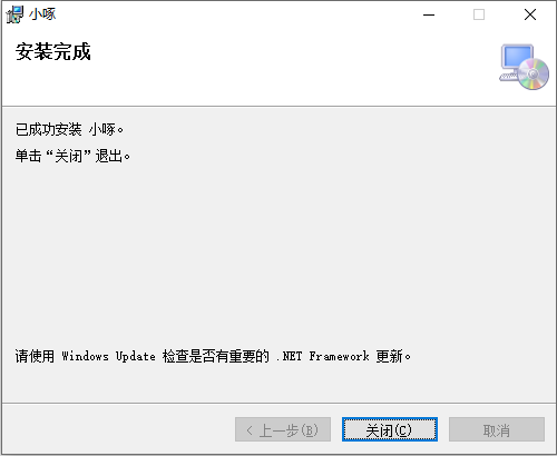 5、點擊“關閉”,“小啄”安裝完成,如下圖所示。