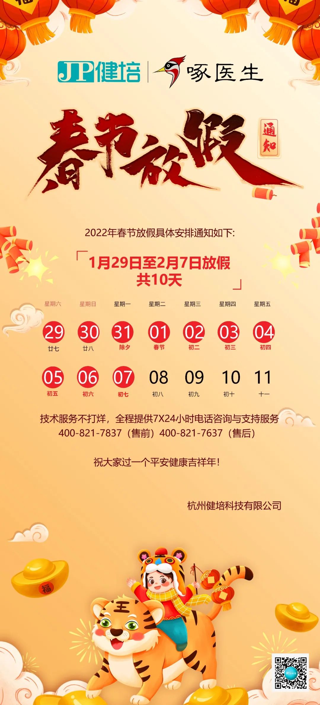 2022,再譜奮斗新篇章值此新春佳節(jié)來(lái)臨之際,健培科技全體員工提前給大家拜年了,祝大家:如虎添翼,福運(yùn)連連!