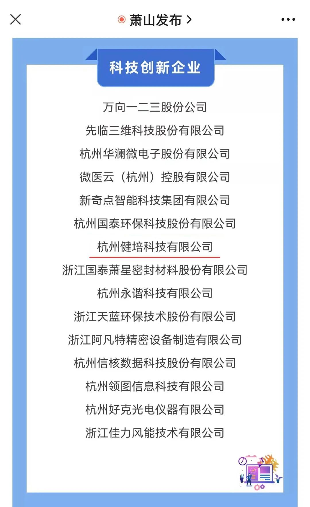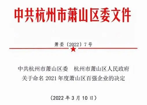 喜訊:健培科技成功入圍“蕭山區(qū)百?gòu)?qiáng)企業(yè)”