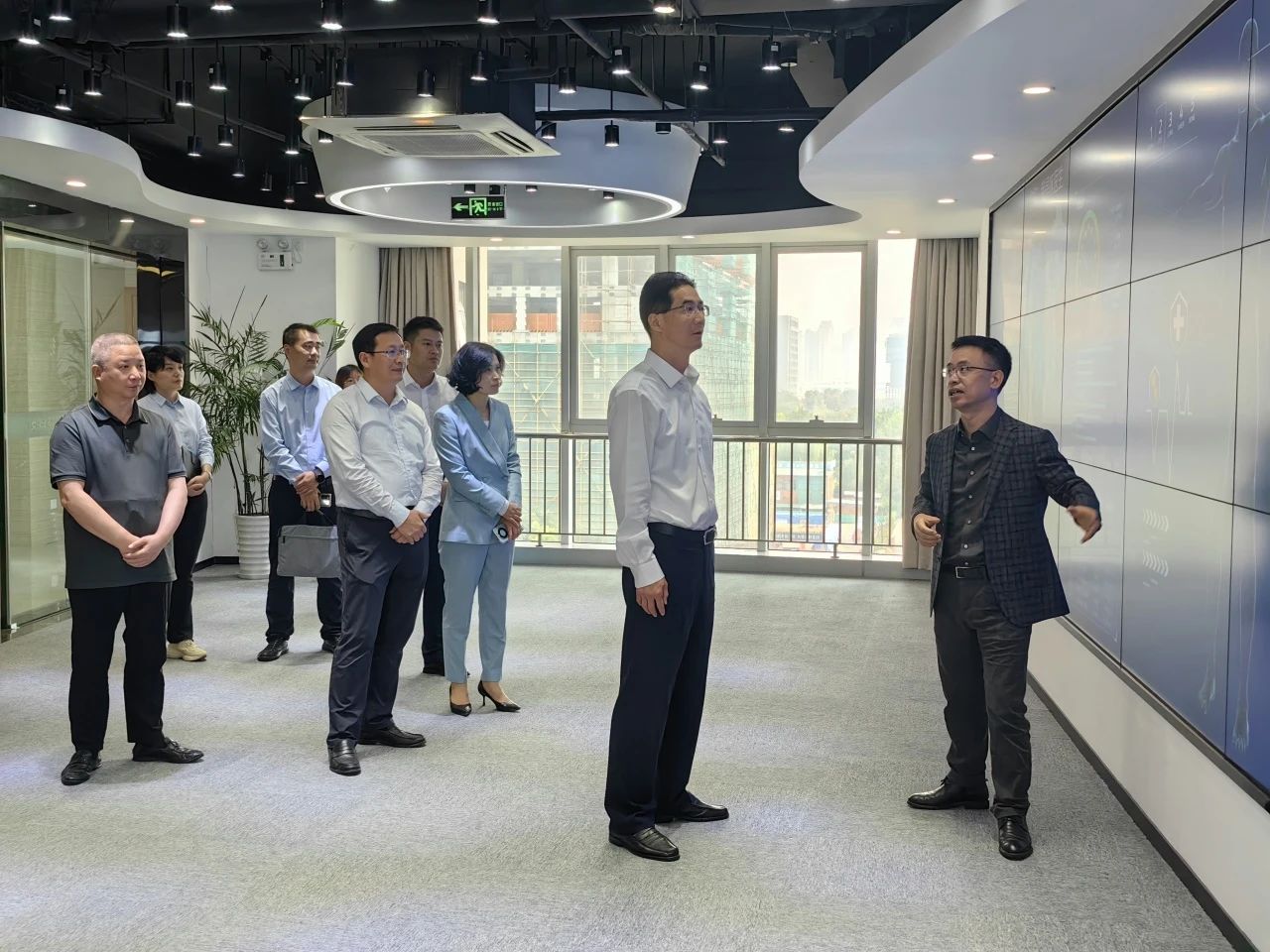 10月25日,蕭山經(jīng)濟(jì)技術(shù)開(kāi)發(fā)區(qū)黨工委書(shū)記、管委會(huì)主任許昌一行蒞臨健培科技考察指導(dǎo)工作,調(diào)研新一代人工智能科技的最新應(yīng)用進(jìn)展,并深入了解數(shù)字醫(yī)療領(lǐng)域的應(yīng)用場(chǎng)景與產(chǎn)業(yè)化前景。開(kāi)發(fā)區(qū) 黨政辦、投促局、經(jīng)發(fā)局主要負(fù)責(zé)人參加。市北兵團(tuán)副指揮長(zhǎng)、信息港小鎮(zhèn)主要負(fù)責(zé)人陪同調(diào)研。