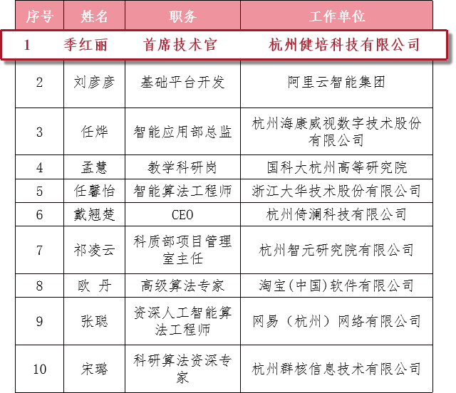 大會表彰了在人工智能、數(shù)字經(jīng)濟領(lǐng)域表現(xiàn)優(yōu)秀、工作成績突出的女性代表,頒布了杭州市第四屆“代碼女神”榜單。經(jīng)過前期海選和企業(yè)推薦投票,最終有十位“代碼女神”脫穎而出。全國三八紅旗手、全國杰出創(chuàng)業(yè)女性、全國巾幗建功標兵、浙江省政協(xié)委員、杭州市女知聯(lián)會長、健培科技首席技術(shù)官季紅麗成功入選。