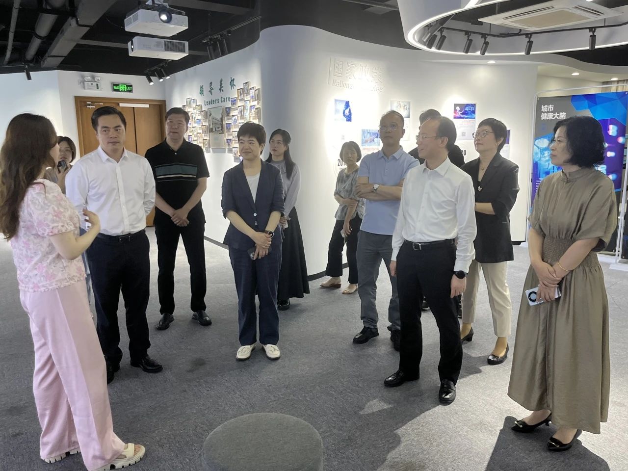 6月27日下午,農工黨省委會副主委、良渚實驗室常務副主任、浙江理工大學副校長、全國政協(xié)委員歐陽宏偉,醫(yī)藥衛(wèi)生工作委員會主任、浙大二院副院長、省政協(xié)委員張茂, 教育科技文化工作委員會主任、浙大昆蟲科學研究所副所長、省政協(xié)委員王曉偉, 醫(yī)藥衛(wèi)生工作委員會副主任、省中醫(yī)院副院長、省政協(xié)委員楊?超 ,省委會調研部副部長(醫(yī)委專委會聯(lián)絡員)林賽君 等農工黨省委會成員蒞臨健培科技,參觀考察并深入了解大數(shù)據與人工智能技術賦能健康醫(yī)療各場景應用情況,同時舉辦了農工黨省委會醫(yī)藥衛(wèi)生工作委員會2024年度工作會議暨第11期“同心議政”沙龍。農工黨省委會教科文工作委員會委員、健培科技董事長程國華,浙江省政協(xié)委員、首席技術官季紅麗陪同考察。