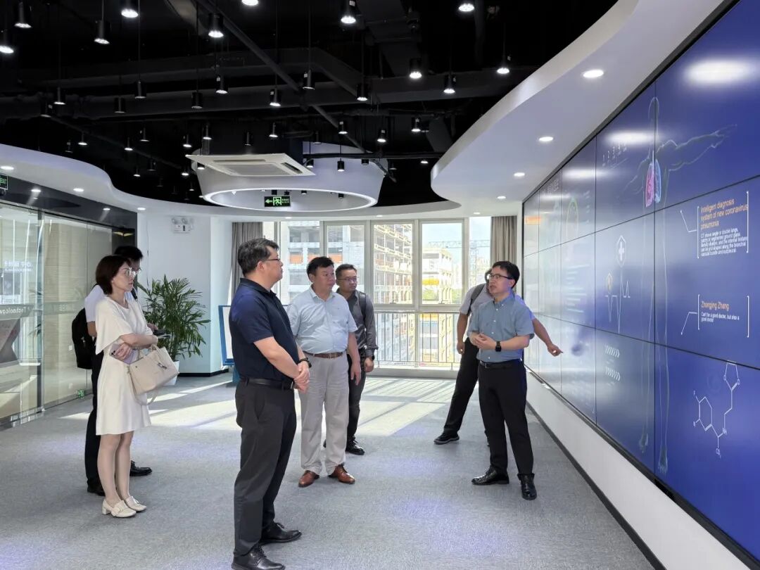 9月16日下午,聯(lián)通數(shù)據(jù)智能有限公司董事長、總經(jīng)理,中國聯(lián)通數(shù)智研究院院長陳海鋒;綜合部總經(jīng)理張福林;金文部總經(jīng)理陳昀等領(lǐng)導(dǎo)一行蒞臨健培科技考察指導(dǎo)工作。調(diào)研新一代信息科技的發(fā)展趨勢和應(yīng)用前景,并重點關(guān)注人工智能技術(shù)在醫(yī)療領(lǐng)域的創(chuàng)新和應(yīng)用。健培科技董事長程國華、聯(lián)合創(chuàng)始人兼首席技術(shù)官季紅麗、首席醫(yī)療戰(zhàn)略官鄭昶、副總裁徐招海、黨支部書記謝金波、產(chǎn)品部總監(jiān)周彬波、方案設(shè)計部總監(jiān)任晉忠等公司領(lǐng)導(dǎo)陪同調(diào)研。