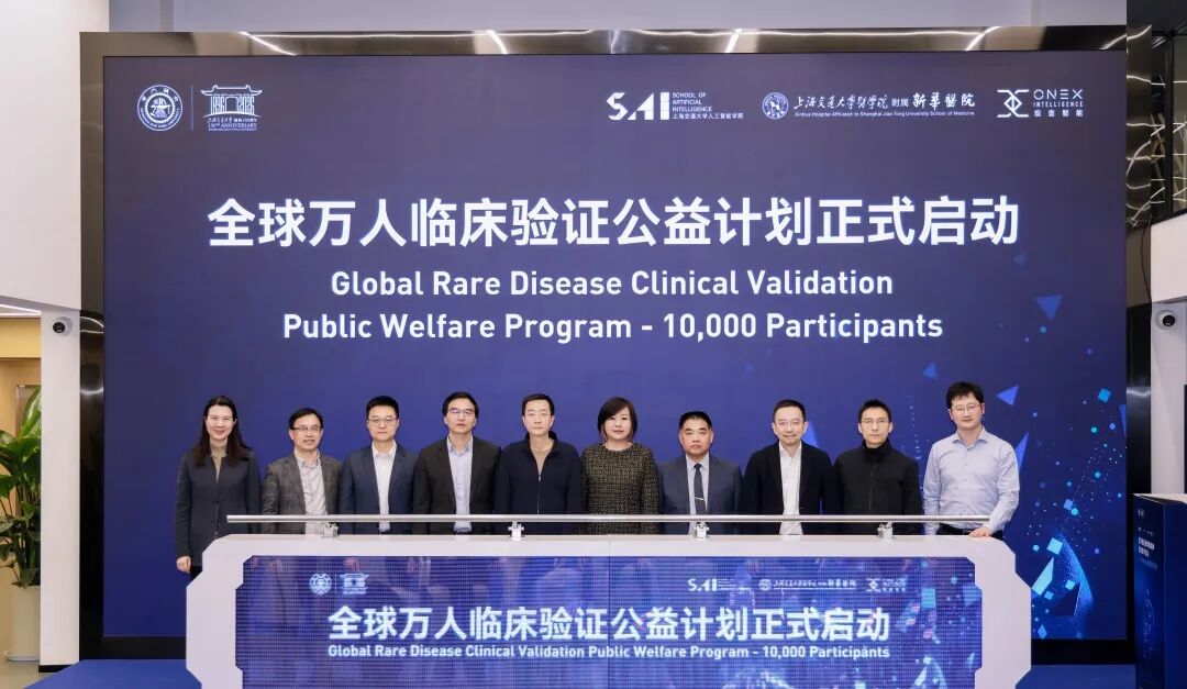 會上,“全球萬人臨床驗證公益計劃” 正式啟動,攜手全球同仁編織罕見病智能診斷網(wǎng)。上海市衛(wèi)生健康委員會二級巡視員吳宏、上海國有資本投資有限公司副總裁陸雯、上海交通大學(xué)醫(yī)學(xué)院附屬上海兒童醫(yī)學(xué)中心黨委書記周慧芳、上海交通大學(xué)醫(yī)學(xué)院附屬新華醫(yī)院科研處處長余永國、上海科技大學(xué)生物醫(yī)學(xué)工程學(xué)院創(chuàng)始院長\聯(lián)影智能聯(lián)席CEO沈定剛,杭州健培科技股份有限公司董事長程國華等10位嘉賓共同舉行了啟動儀式。共同見證醫(yī)學(xué) AI 賦能罕見病診療里程碑時刻!